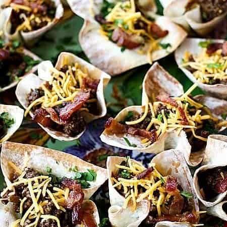 - As I mentioned, the beef filling, bacon, and wonton cups can all be prepared ahead of time for convenience’s sake. The cheese and parsley/green onions can also be made ready ahead of time.