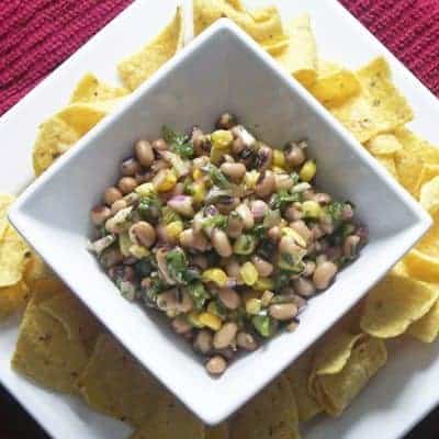 Stick your thumb in the eye of the economy with a big bowl of this bursting-with-flavor, budget-loving, healthy, satisfying black-eyed pea salsa. Serve with abundant tortilla chips or roll into soft tortillas with pulled pork or chicken. You’ll find yourself going back for more and more and more.